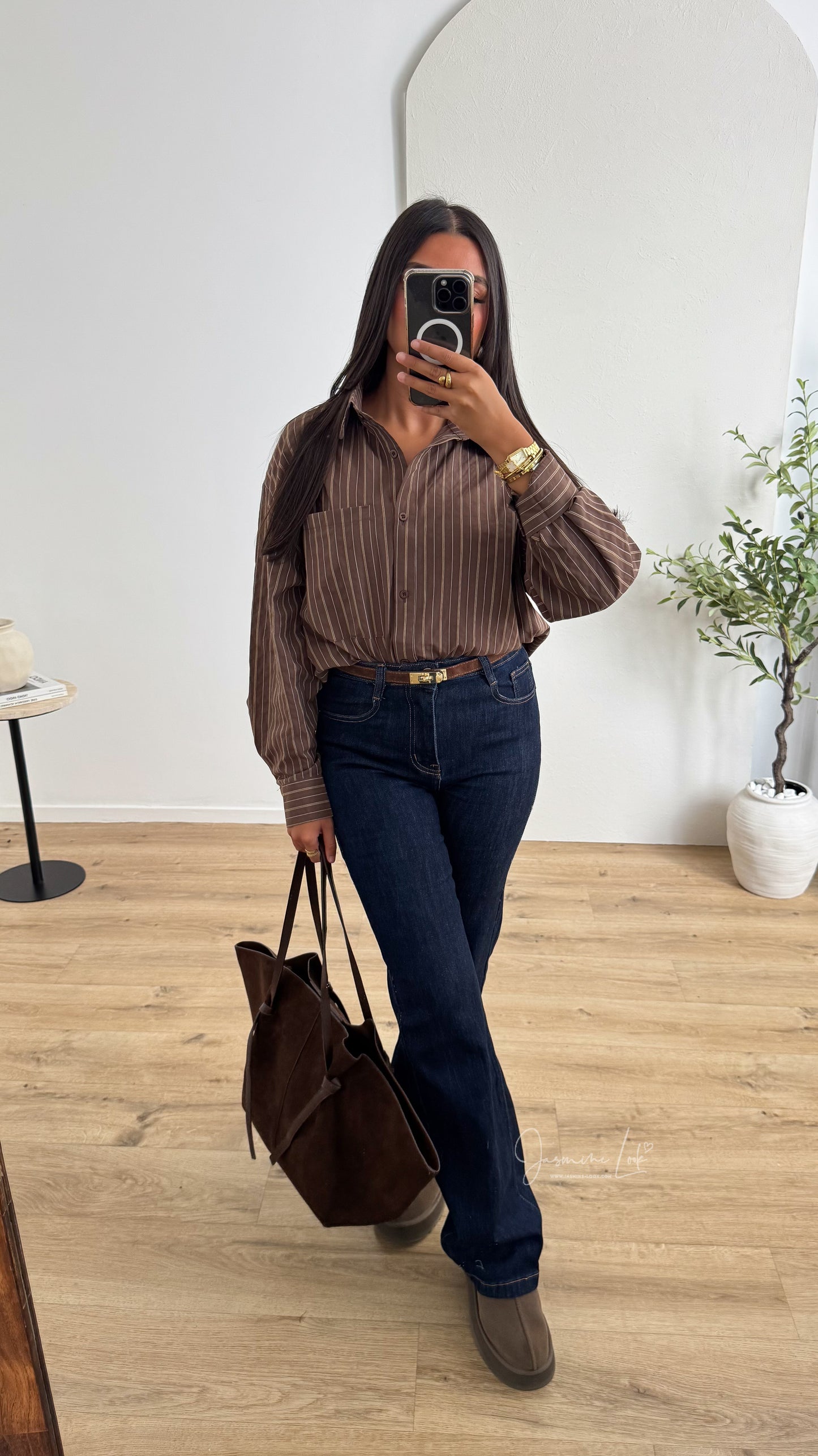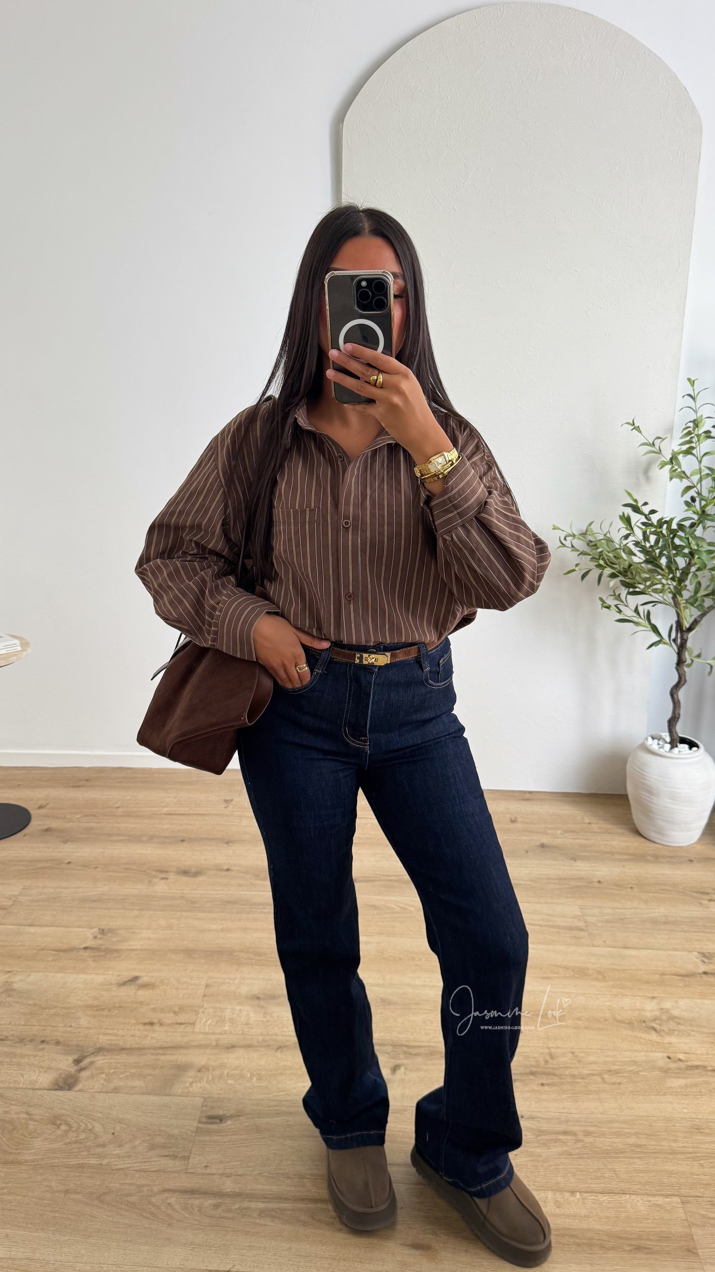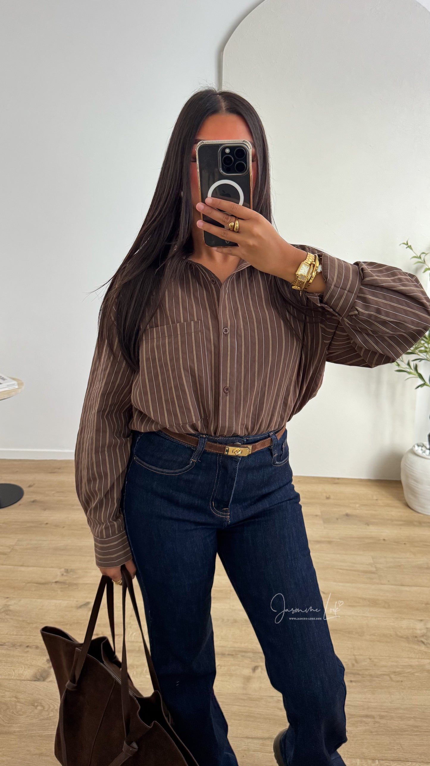 - Jean avec élasthanne taille haute coupe longue coloris brut