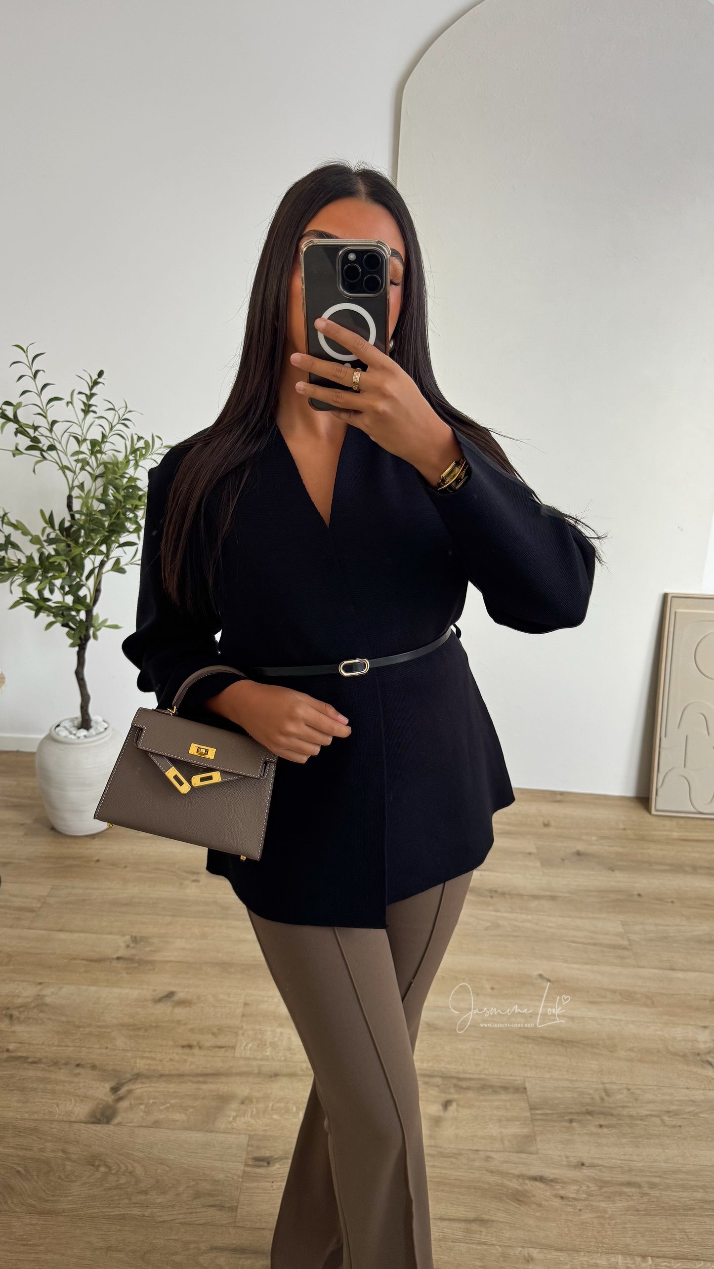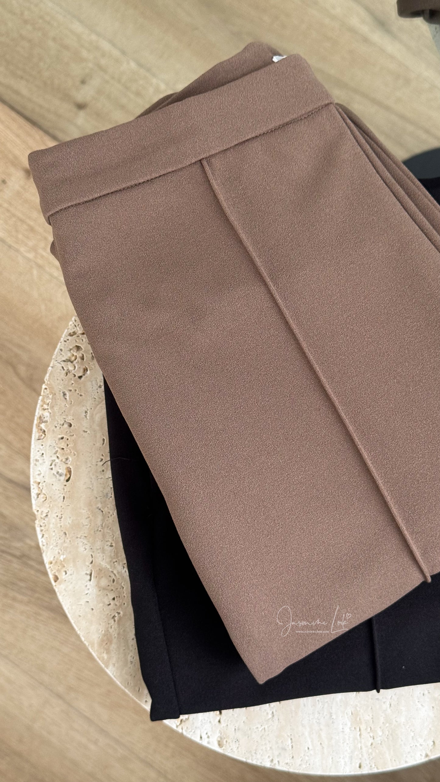 - Pantalon en crêpe strech taille haute avec plis sur l’avant