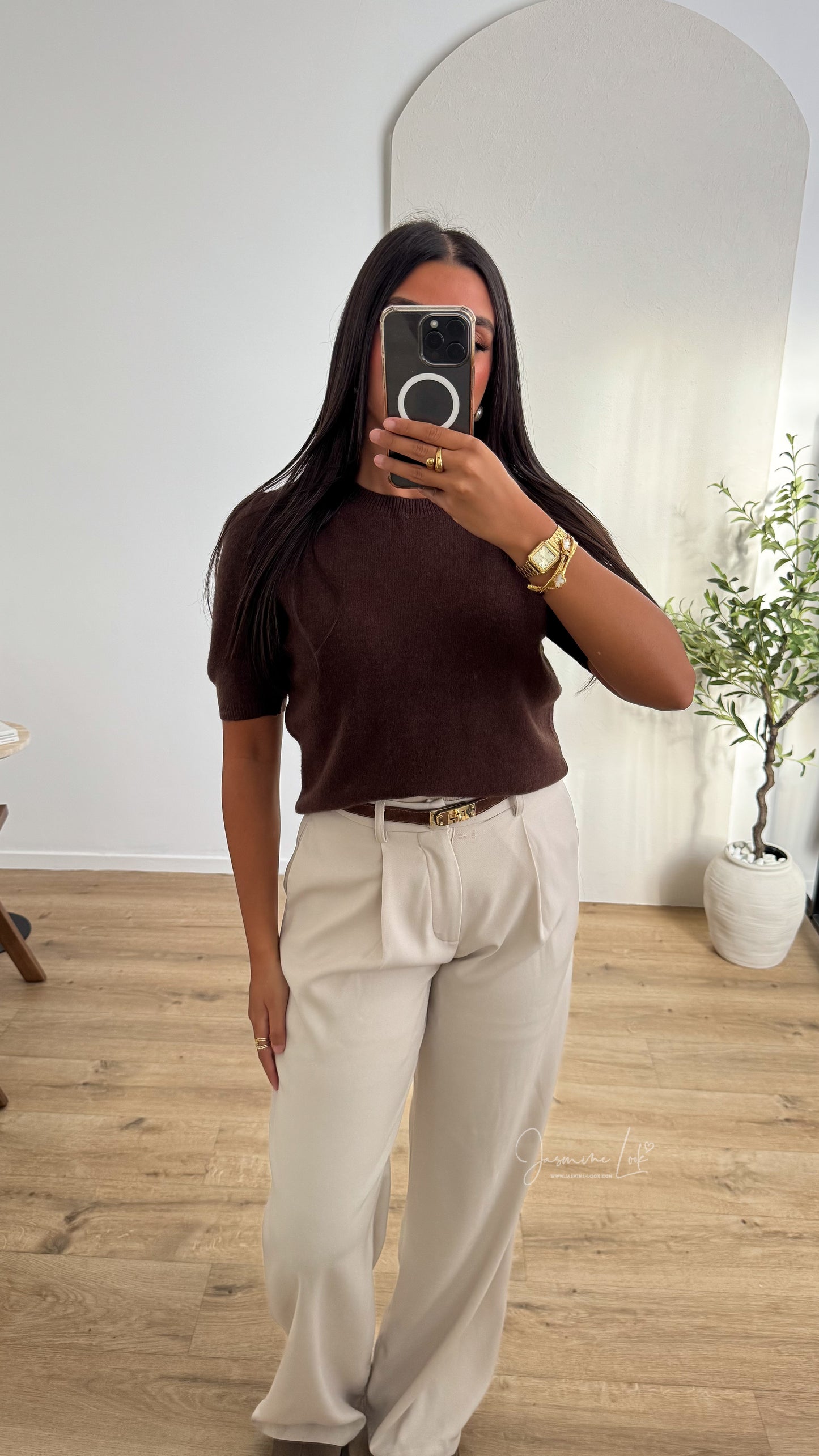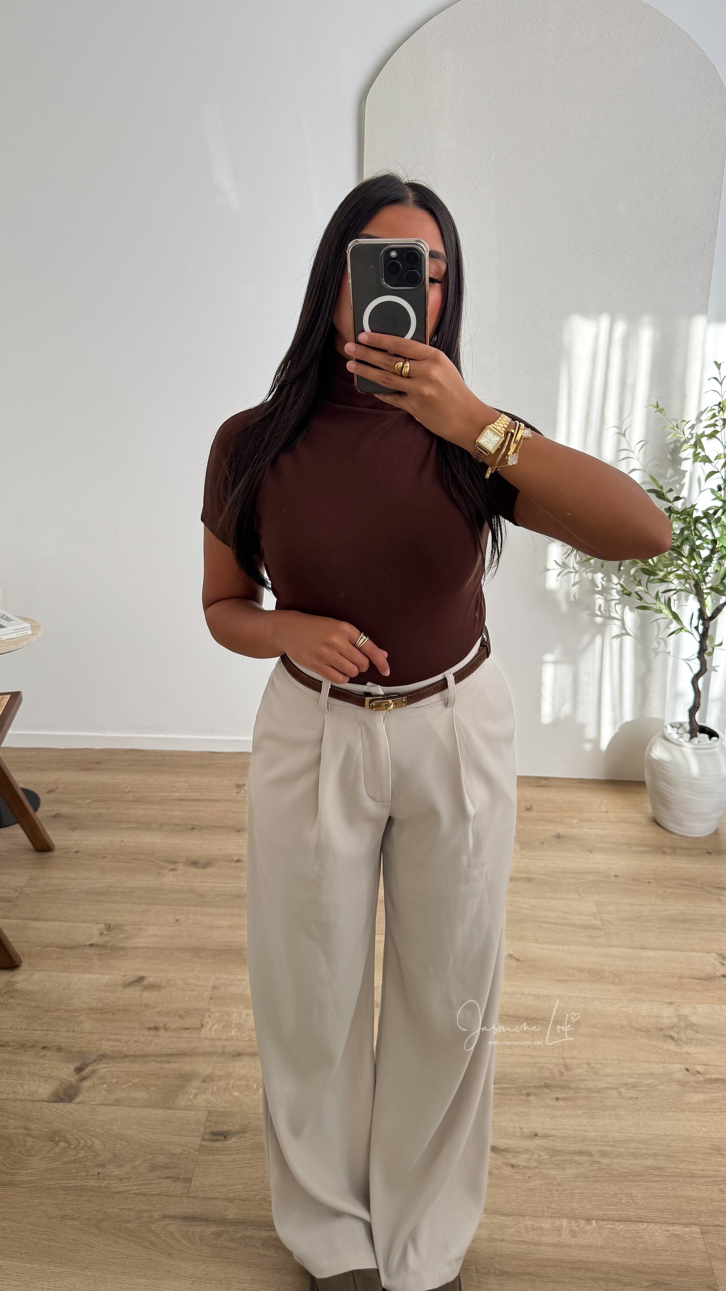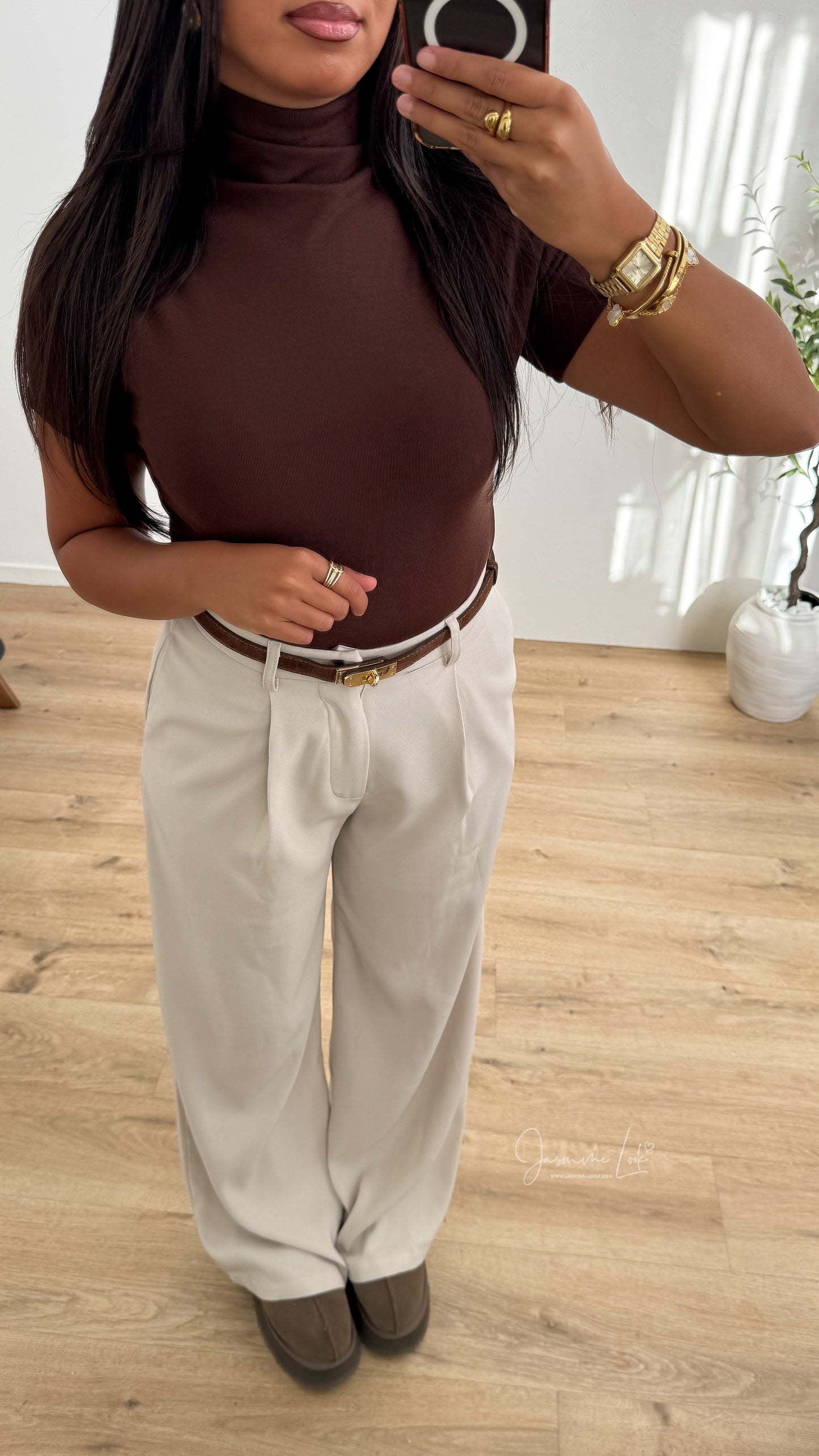 - Pantalon pince taille haute ; coupe longue et fluide .