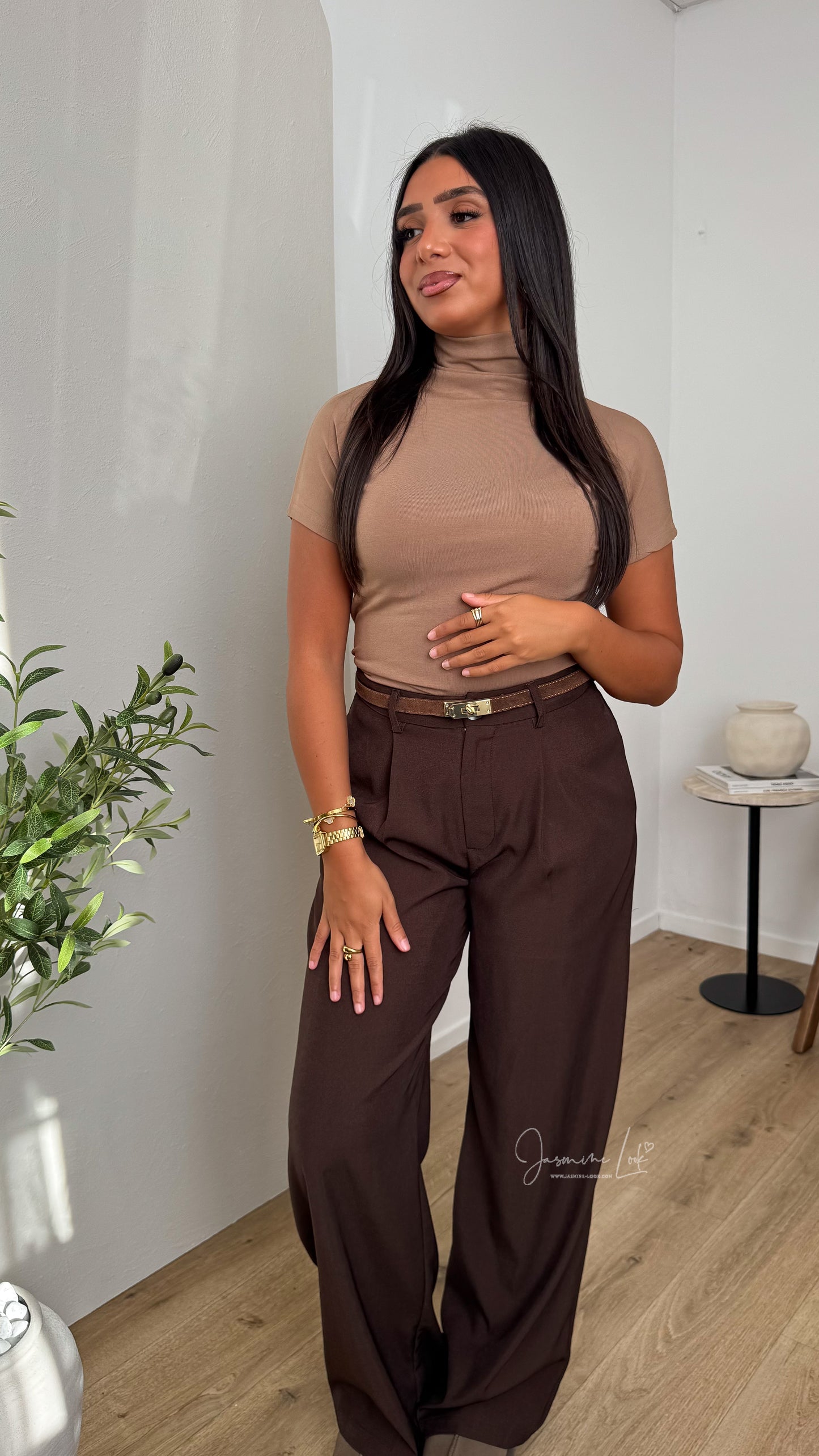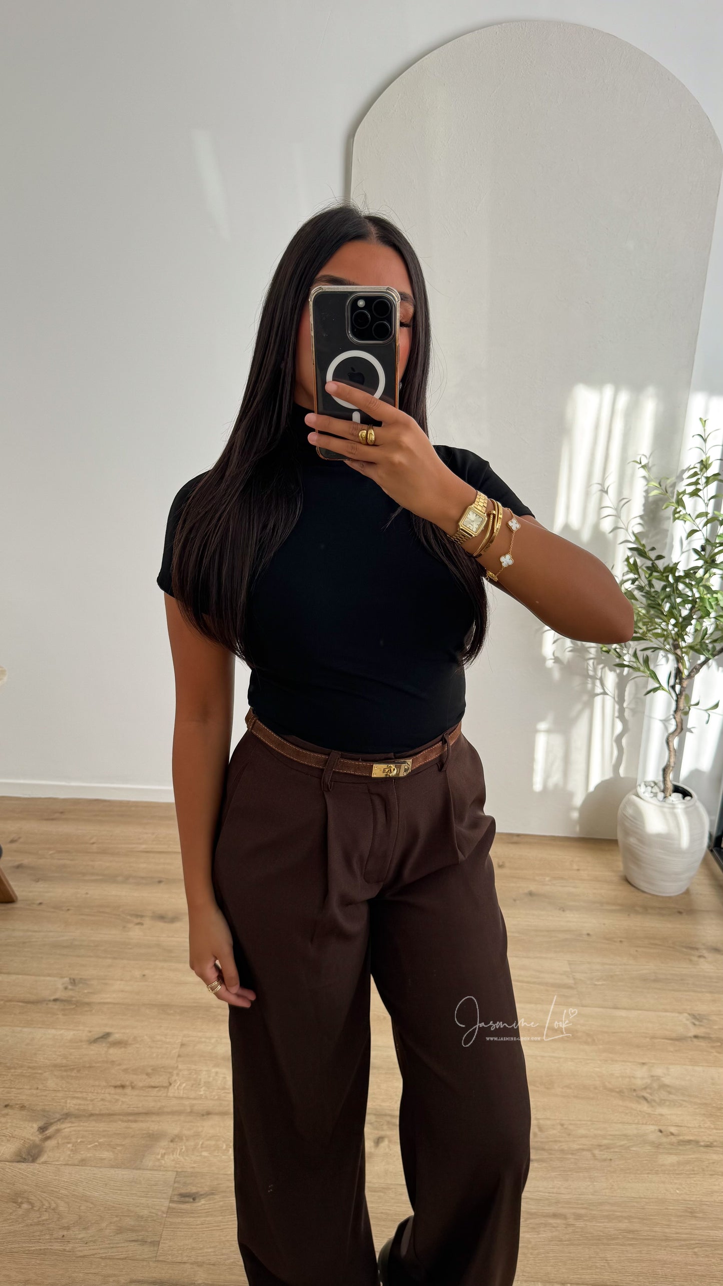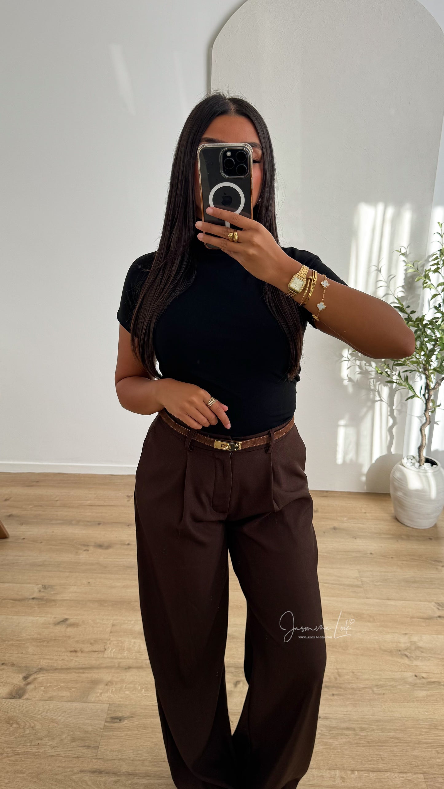 - Pantalon pince taille haute ; coupe longue et fluide .