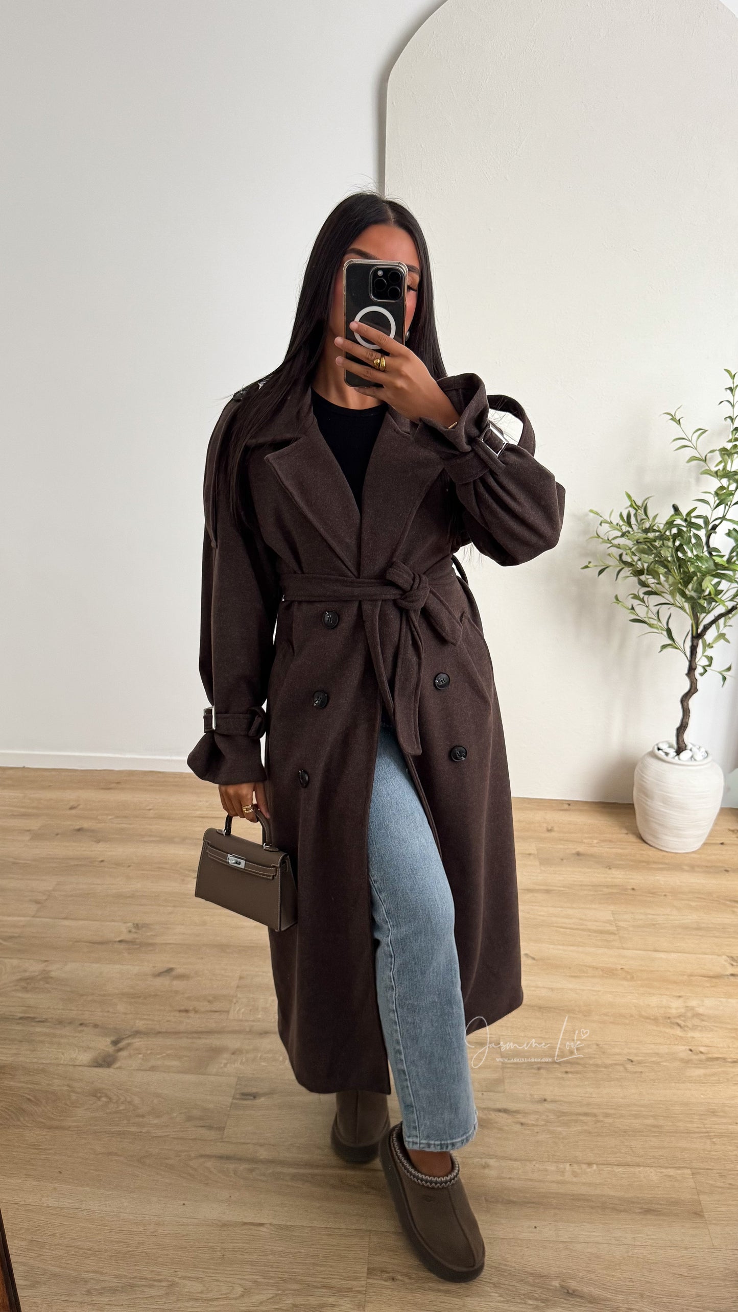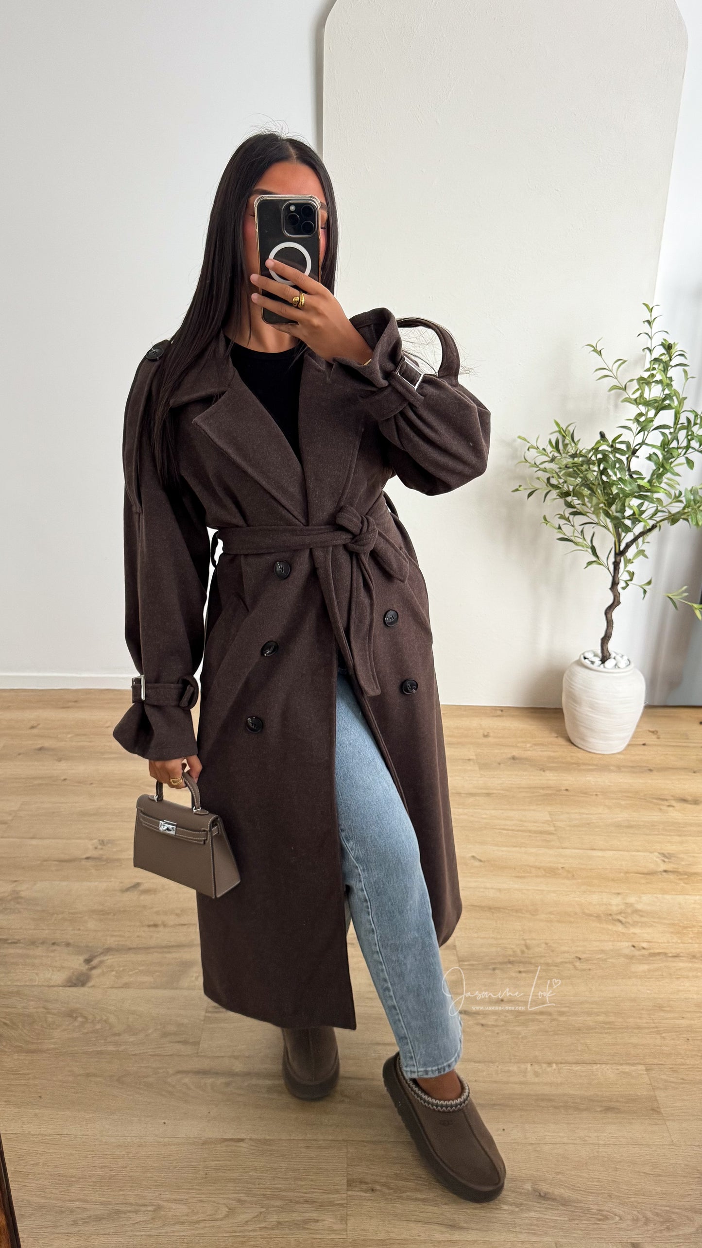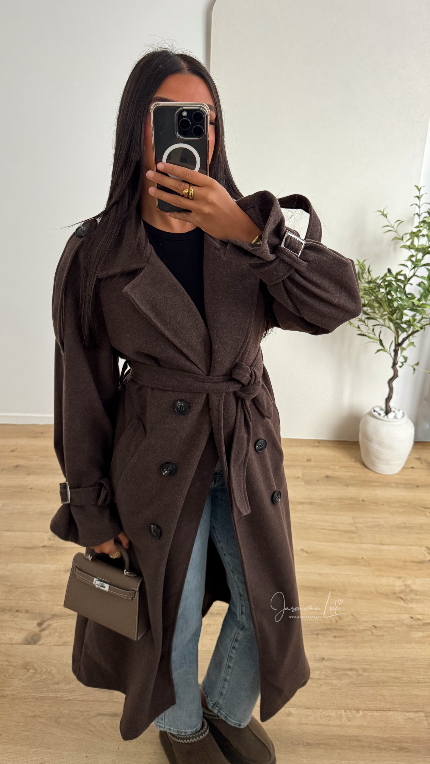 - Manteau long épais coupe trench ceinturé