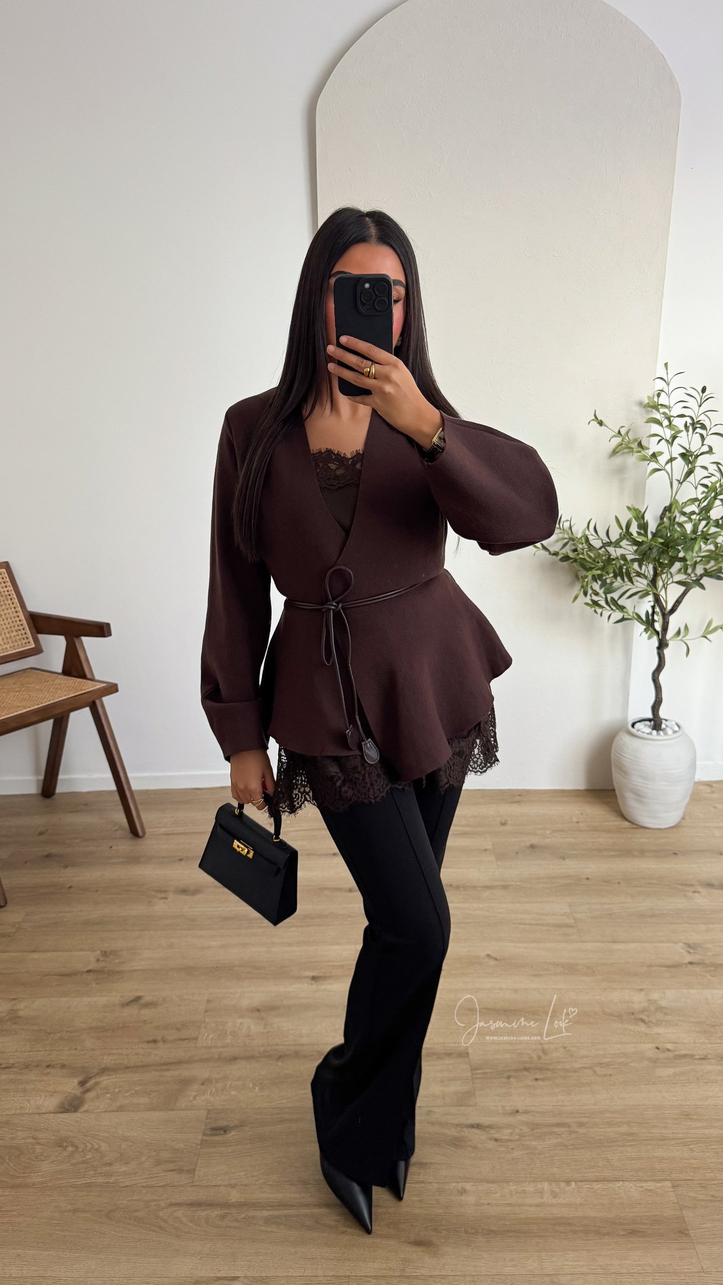 - Gilet maille coupe ajustée, ceinture cordon similicuir