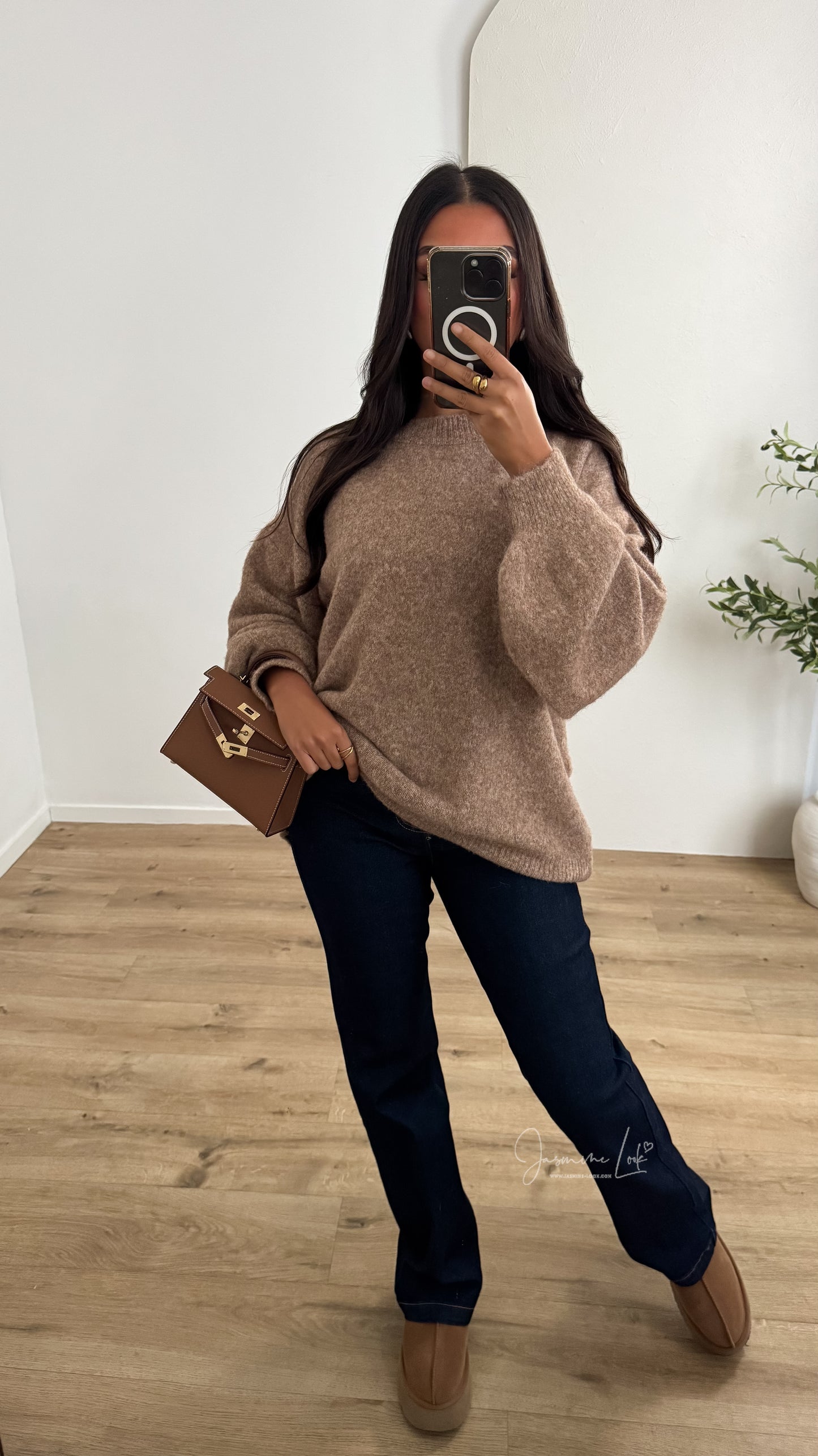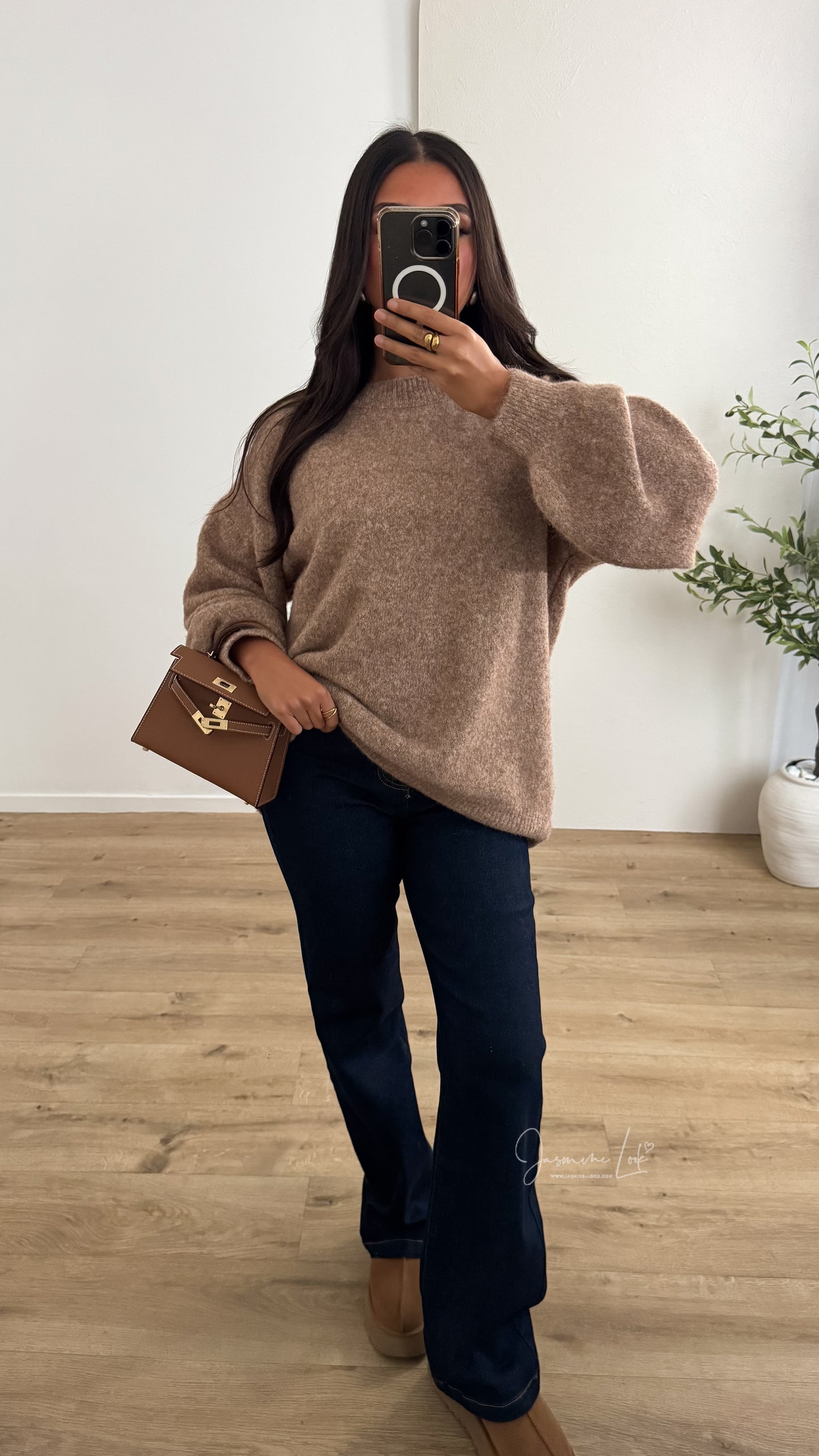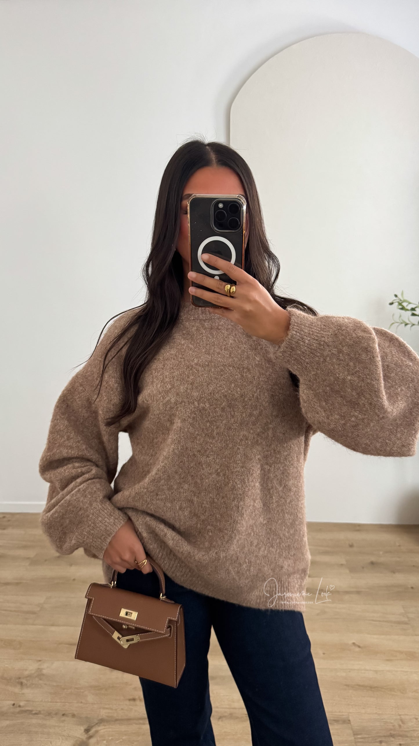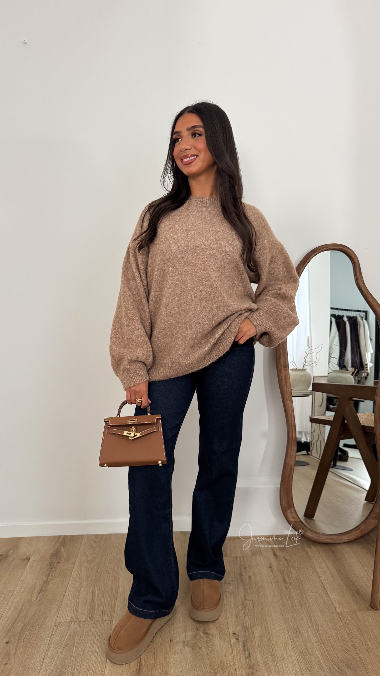 - Pull oversize manche boule couleur Camel chiné