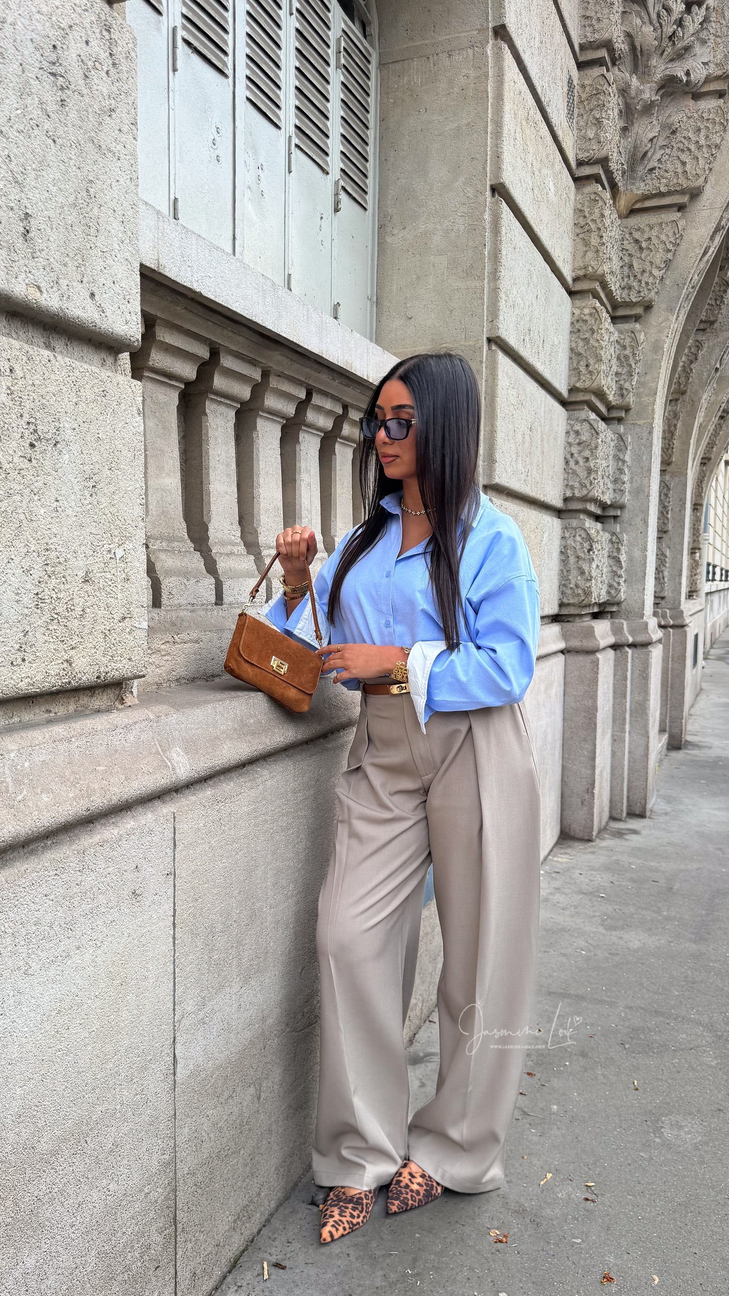 La modèle mesure 1m63 et porte la taille S/36