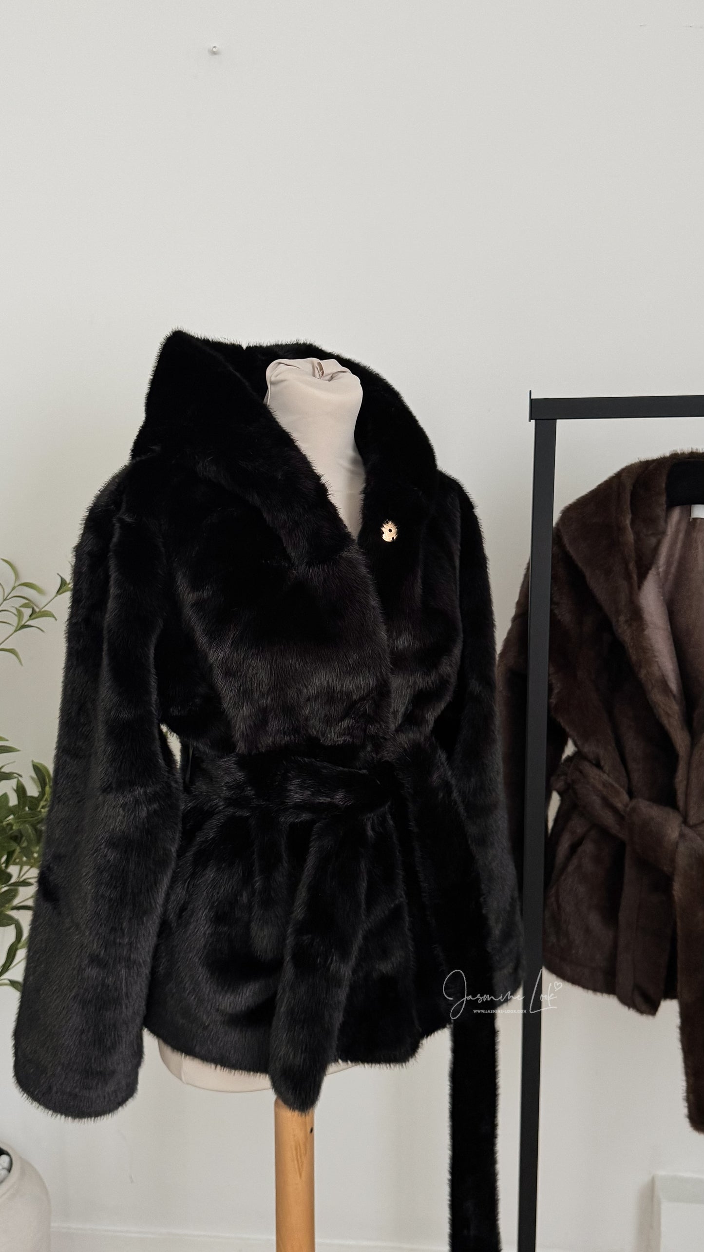 - Fourrure à capuche et ceinture modèle épais