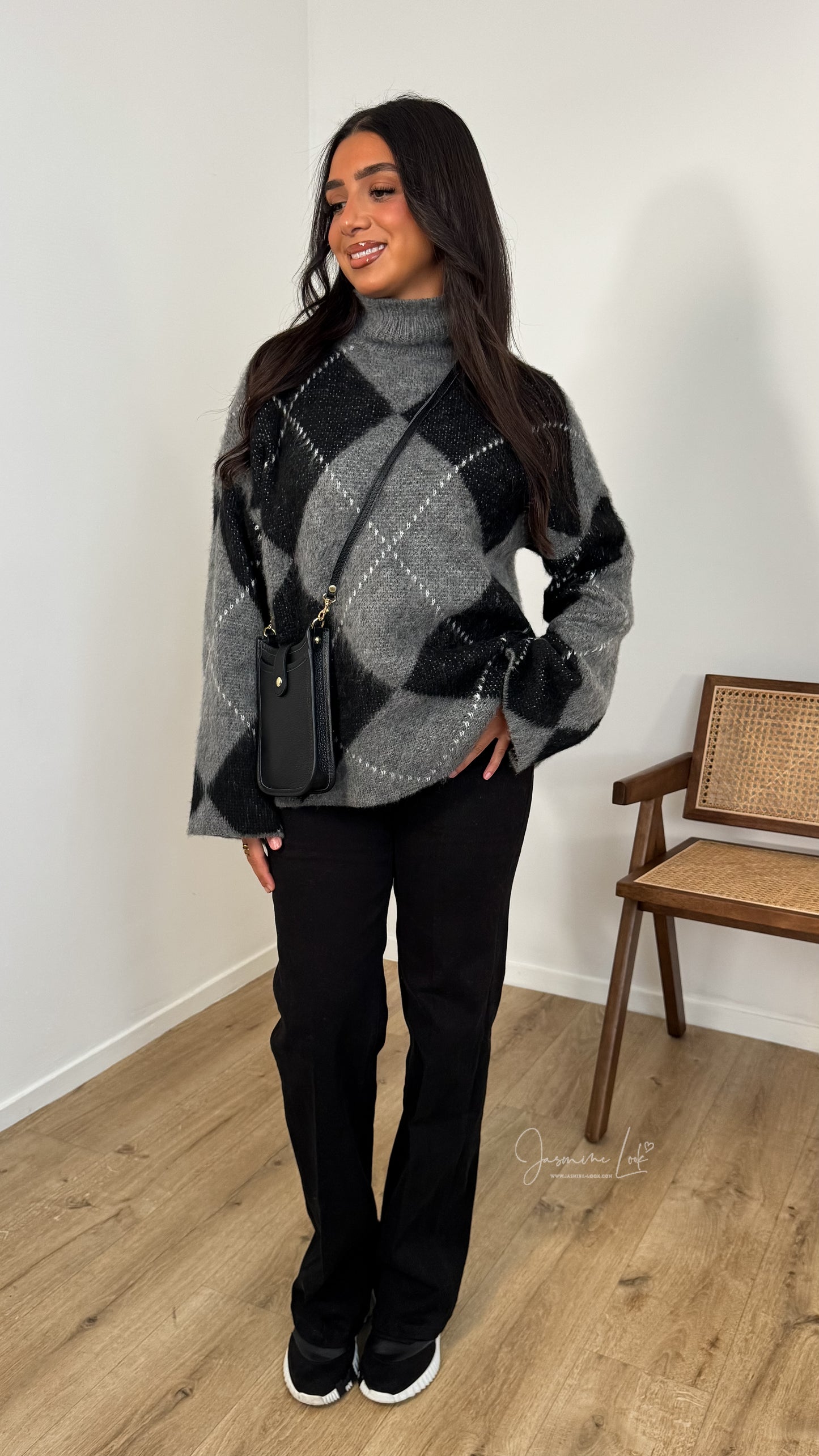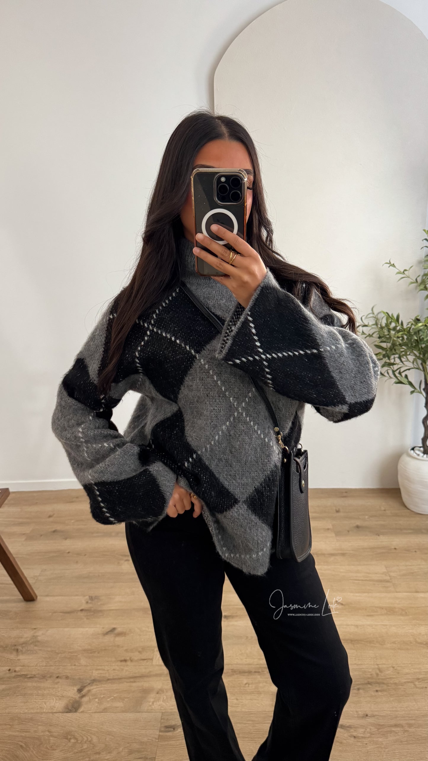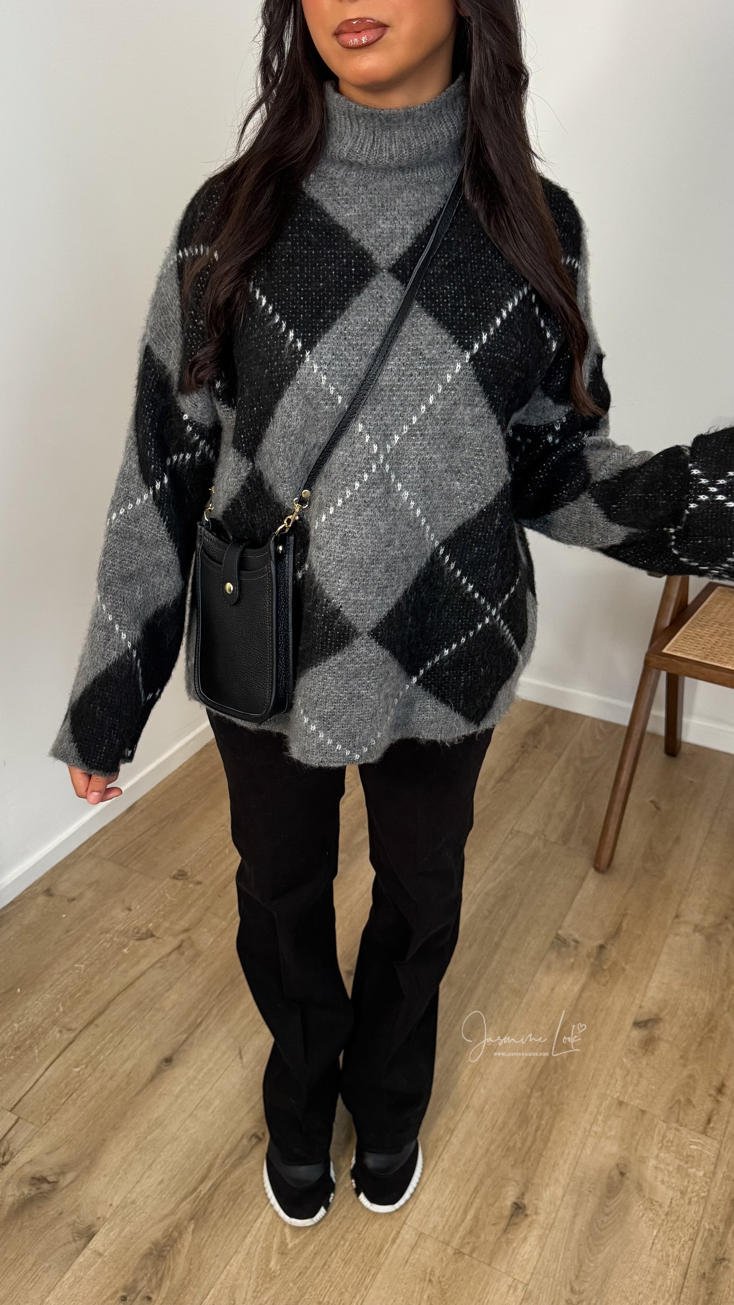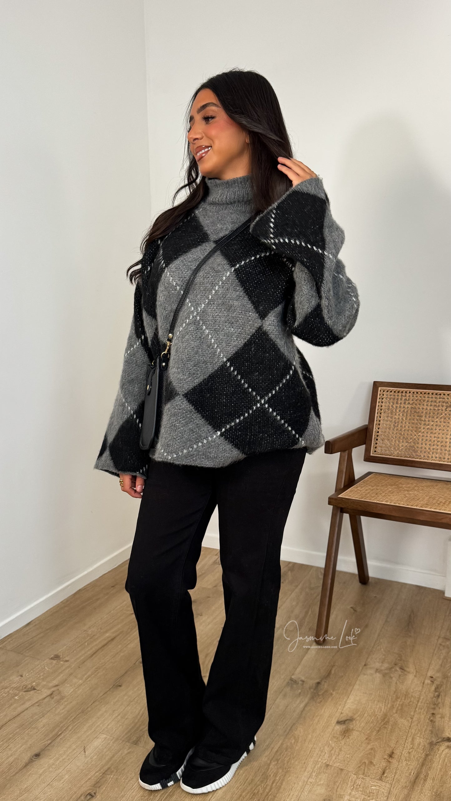 - Pull mi long maille douce avec imprimé losange