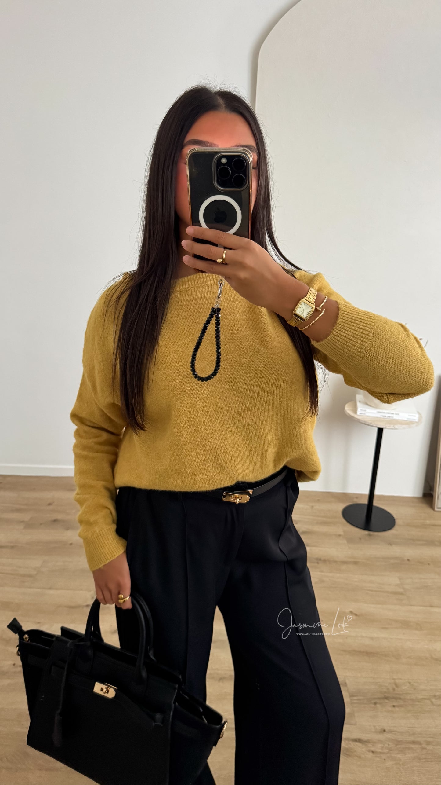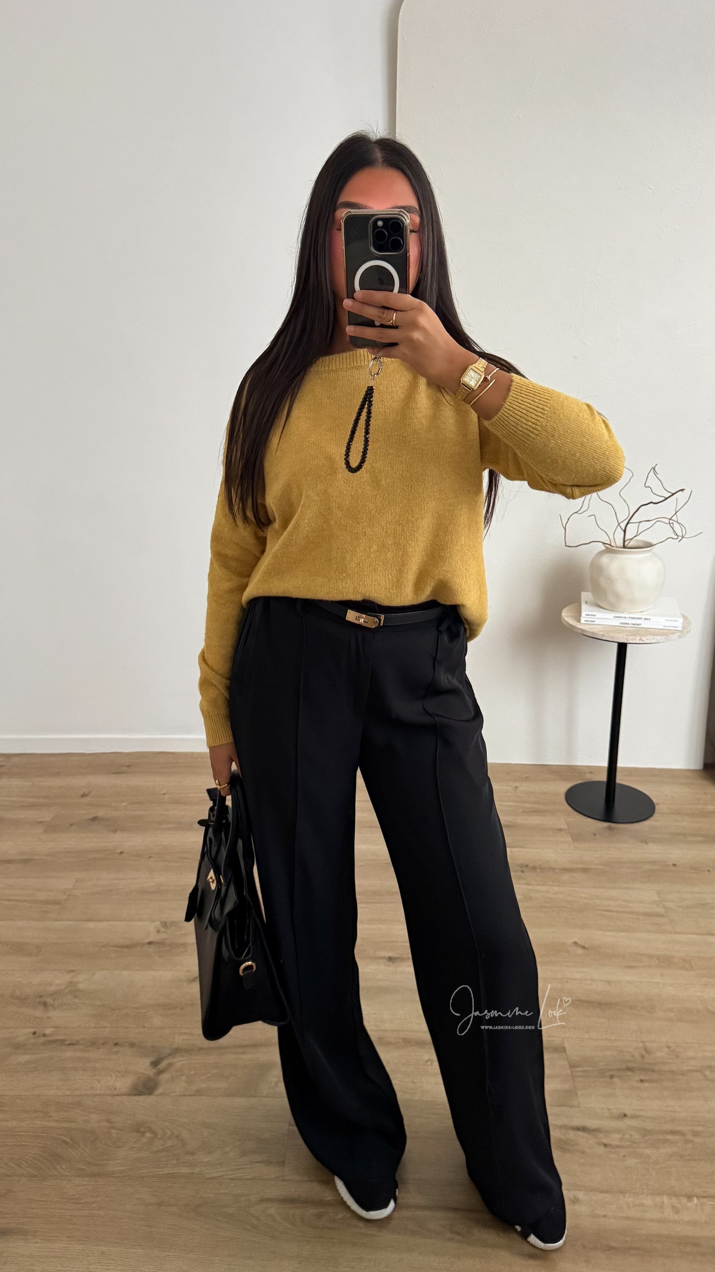 - Pull maille douce coupe classique légèrement plus long sur l’arrière