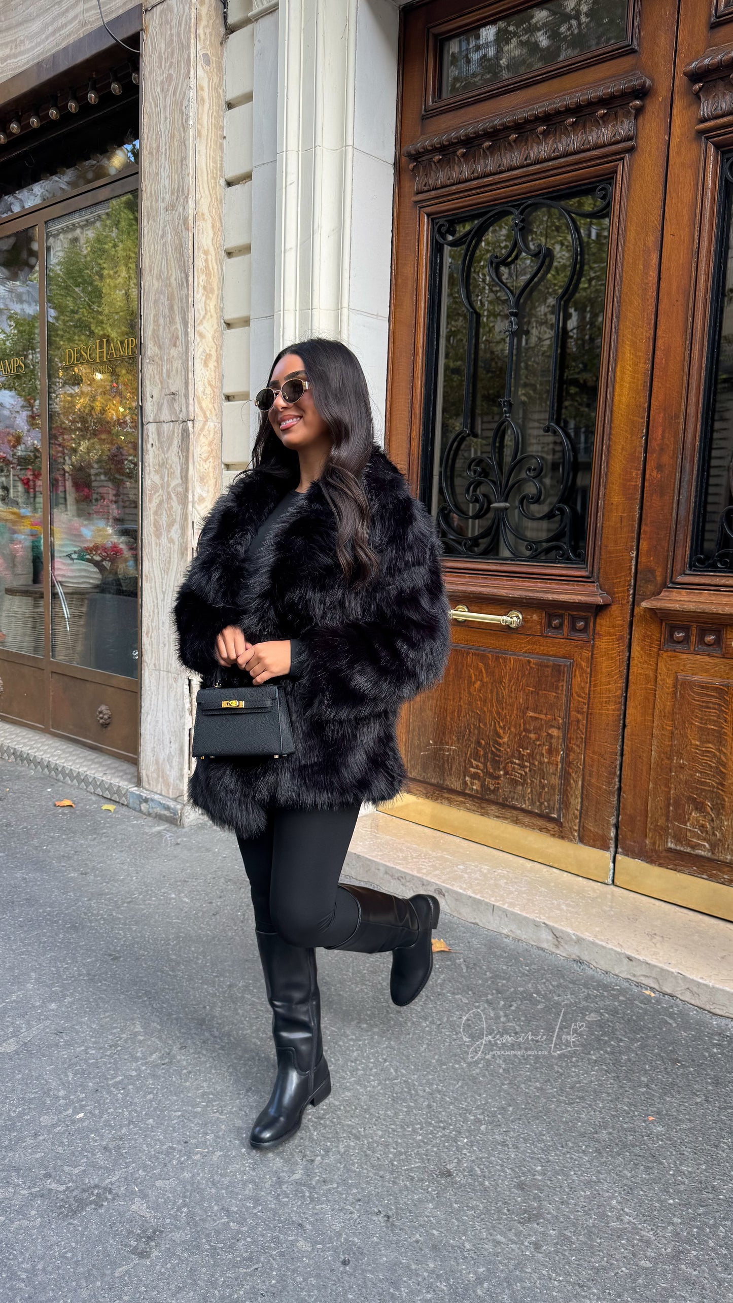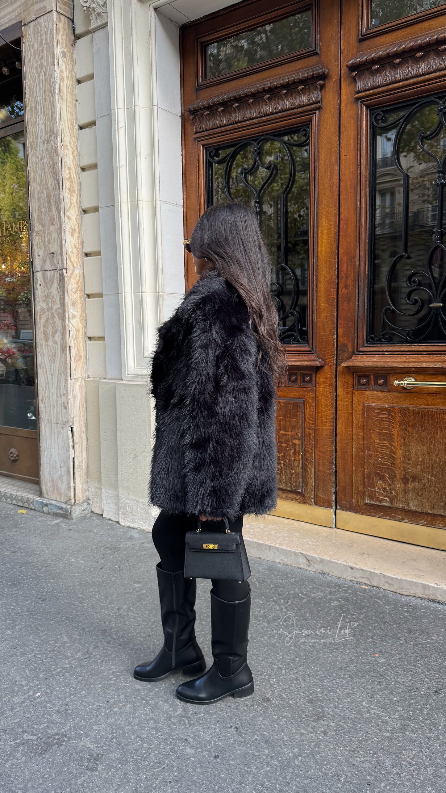 ⚜️Manteau fourrure vegan douce avec col à rabat